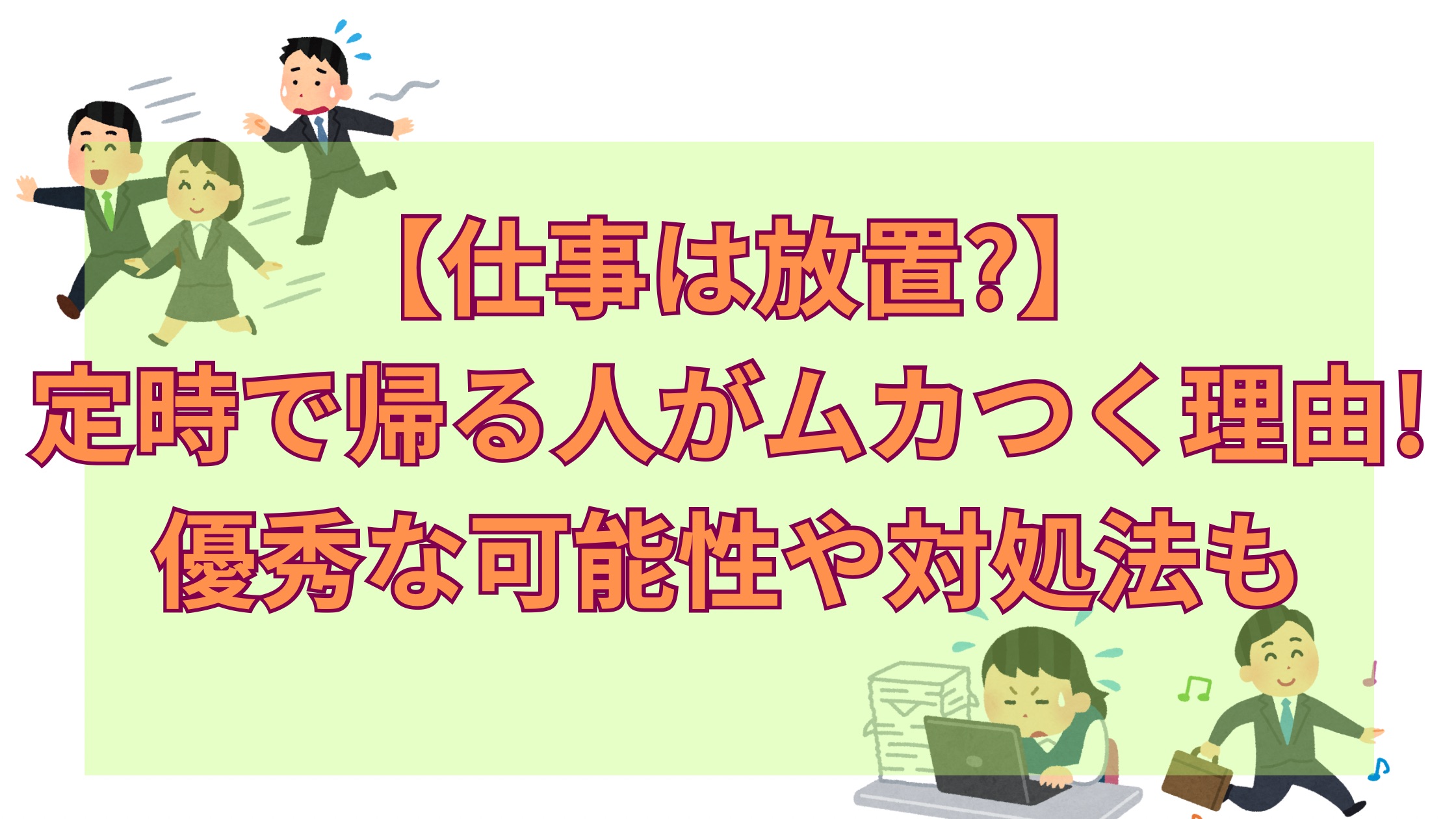 また逆に、定時で帰る人が優秀である可能性があるということ、定時で帰る人にムカついたときの対処法を解説していきます!